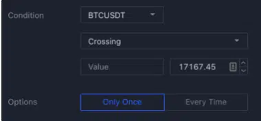 When you click this button, you’ll see this value in the value field, and Crossing will be a default type of alert: