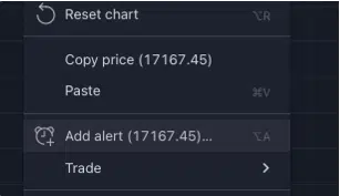 Select a level you want to create an alert for and click the right button. In the menu opened, you’ll see an “Add Alert” menu item with the selected price already populated for you, for example, like here:
