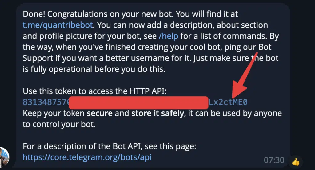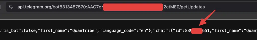 Use a Telegram “getUpdates” request to retrieve your chat ID. Open this URL in your browser (replace <BOT_TOKEN>) with your token: